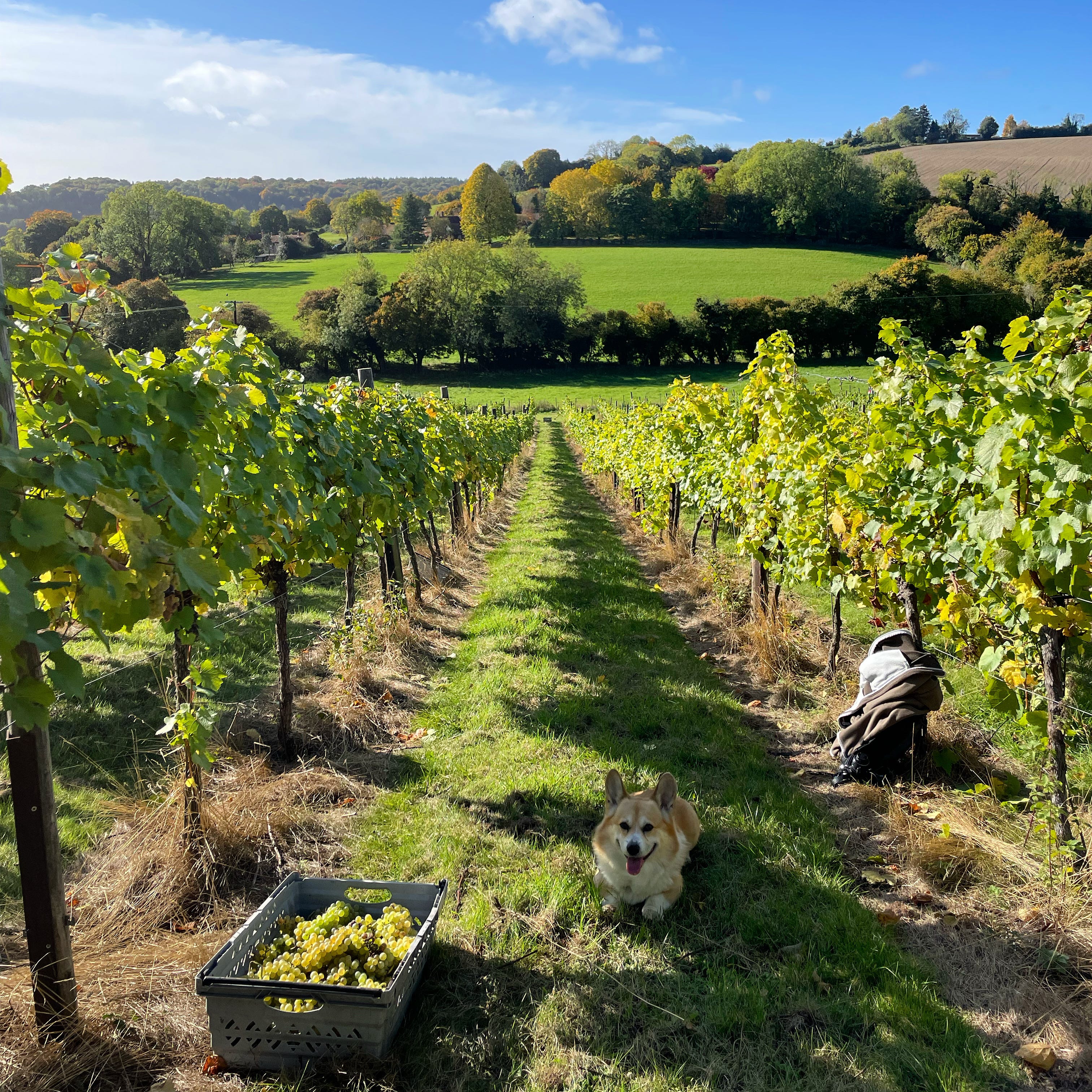 I wasn’t there for the cider, I had joined a group to help bring in the autumn harvest of Auxerrios and Chardonnay grapes that will become their 2019 sparkling white wine.