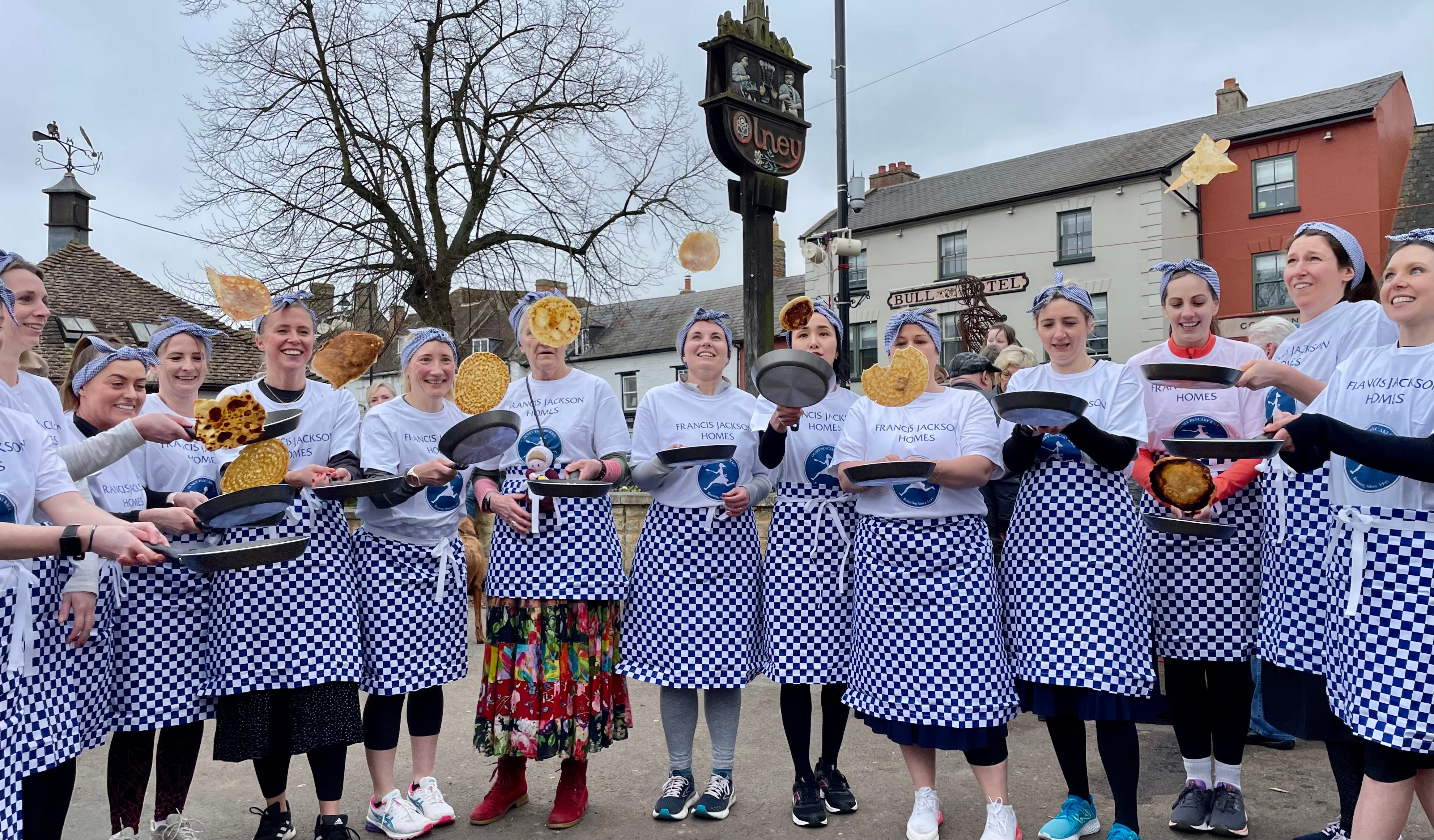 Local women gathered with their frying pans and pancakes to dash the 450 yards from the market square to the church door.