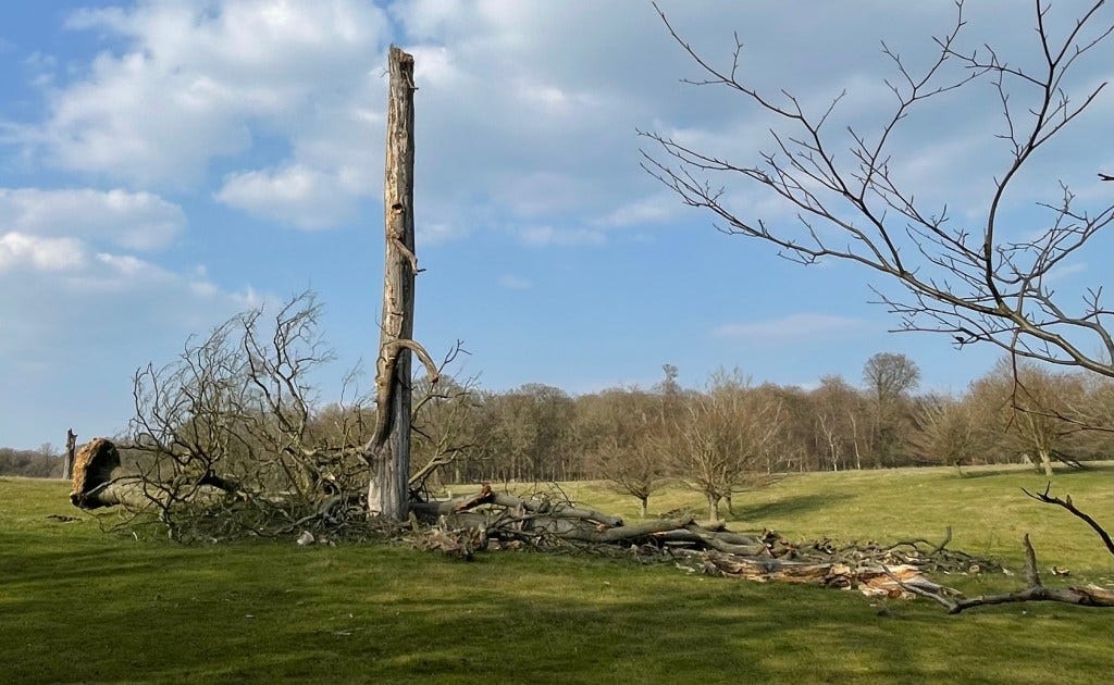 I’m surprised I didn’t hear the crashing trees as I only live a few miles away! Many of the old, majestic trees survived storm Eunice on February 18th, whilst some lie smashed on the ground, blocking paths, or narrowly missing trees, fences, gates and other obstacles.