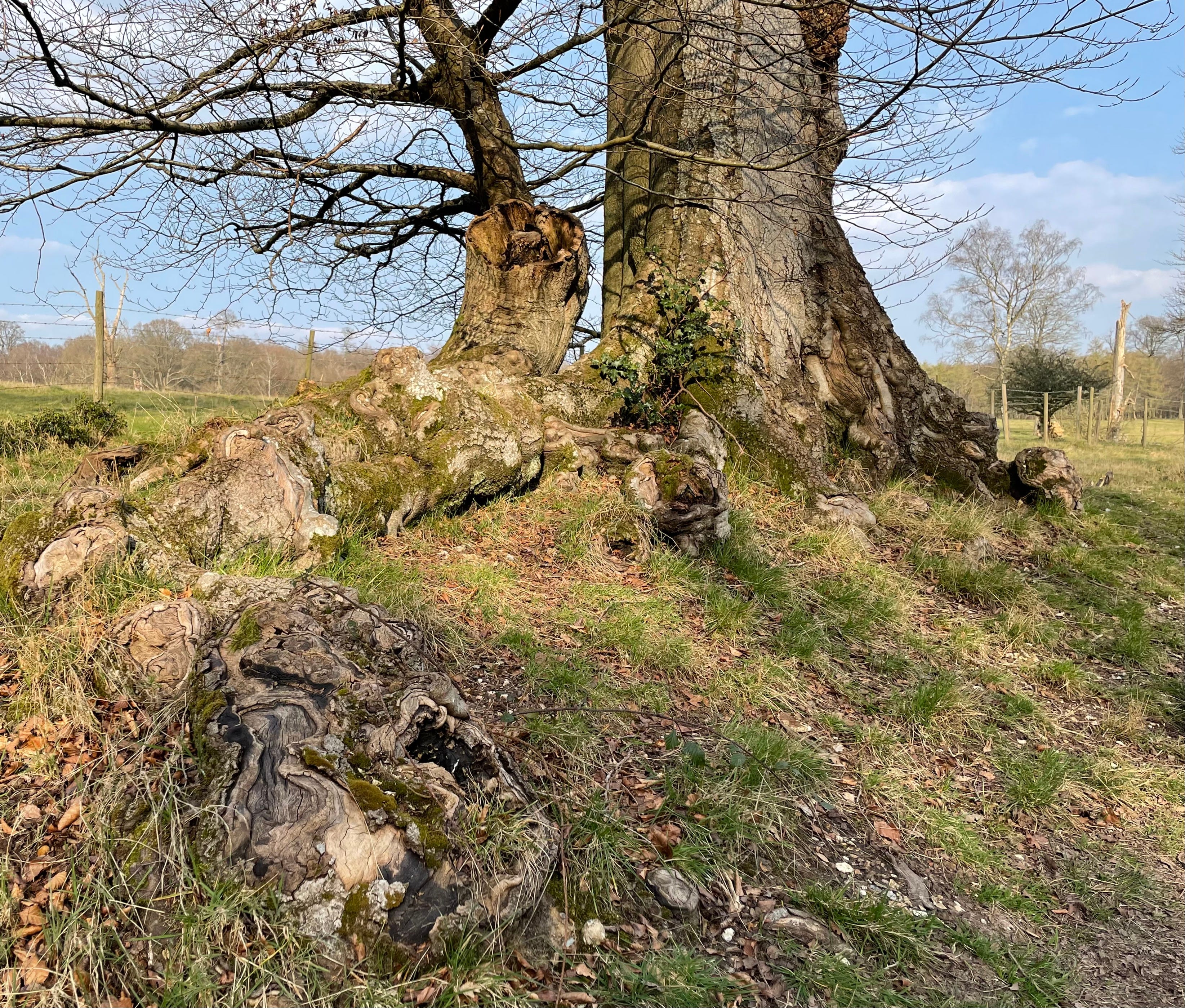 This walk was all about the magnificent trees: big, small, young, ancient, bent, decaying, lightening-stuck or toppled. Before the foliage takes centre stage, I could image in a world turned upside down with their branches like their roots now pointing to the sky. Now it’s all about textures, lumps, bumps, moss and carvings, the various trees stand out including; cherry, beech, oak, chestnut, holly, conifers, hornbeams and ash trees. There will be others, but I don’t know their names.